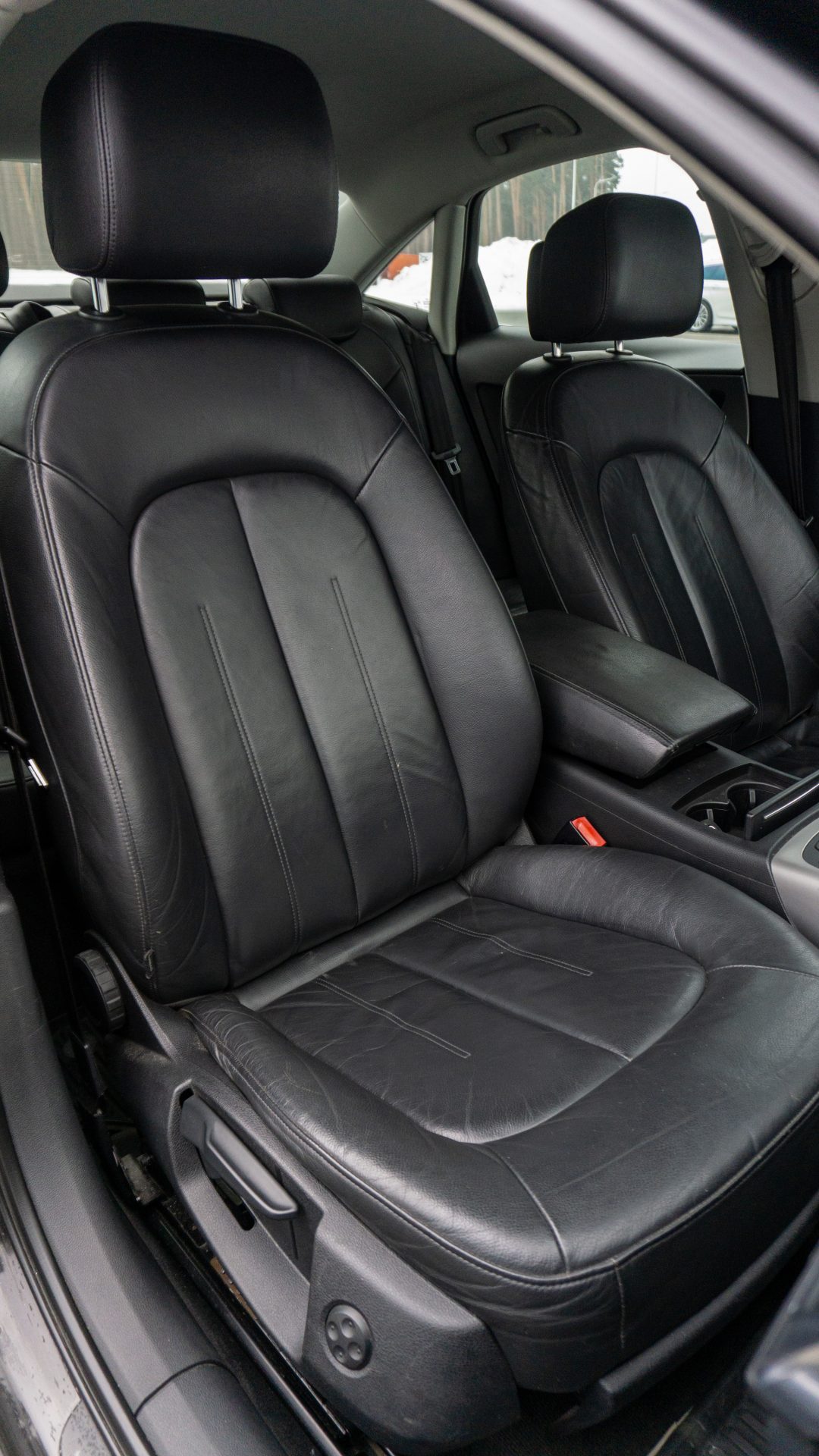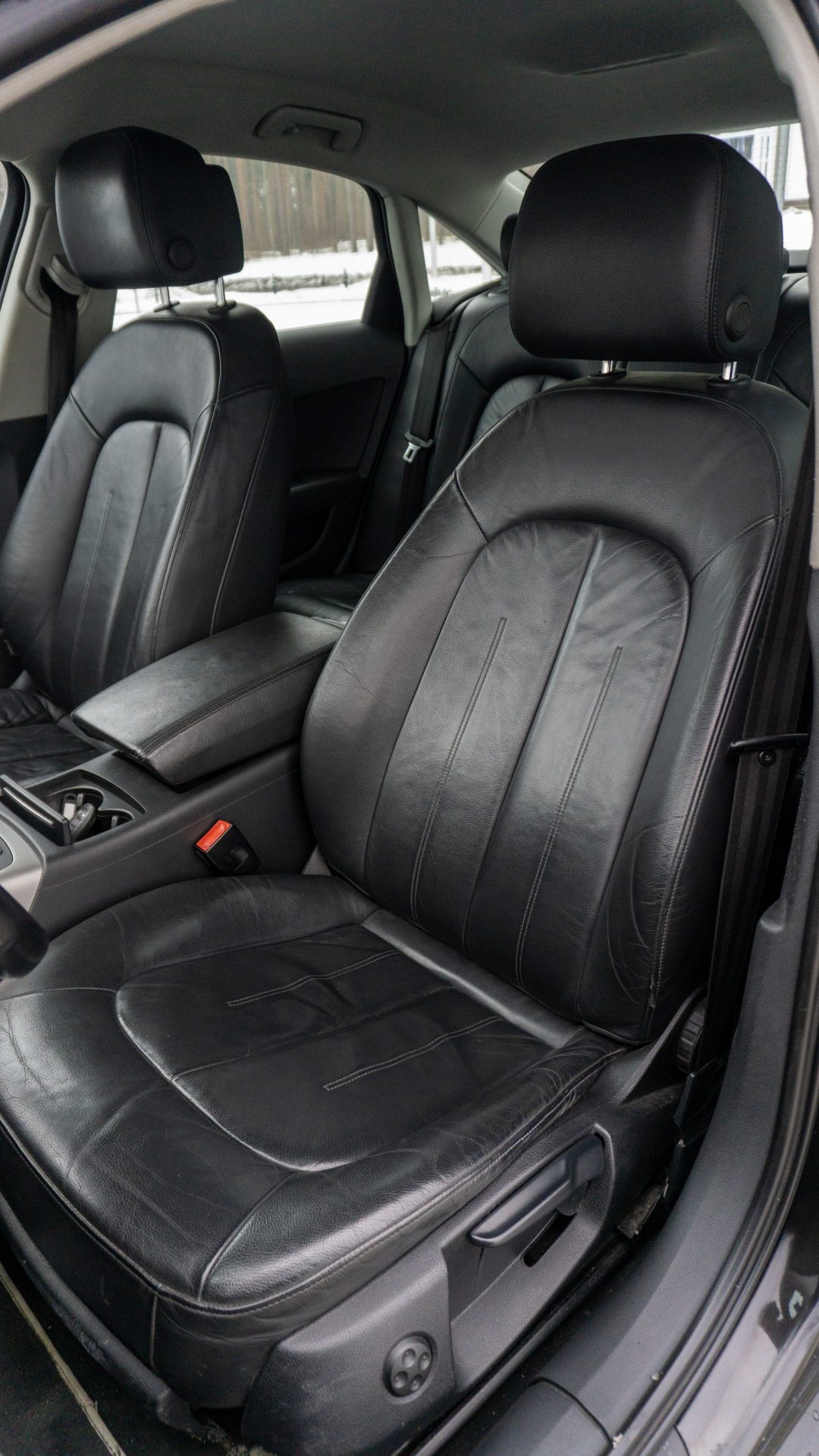 Ādas sēdekļu apdare; izturīgāka un vieglāk kopjama nekā audums.